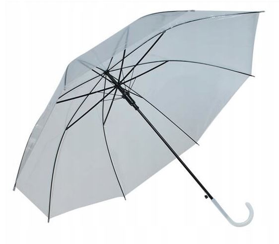 Dámsky holový priehľadný dáždnik klasického tvaru.